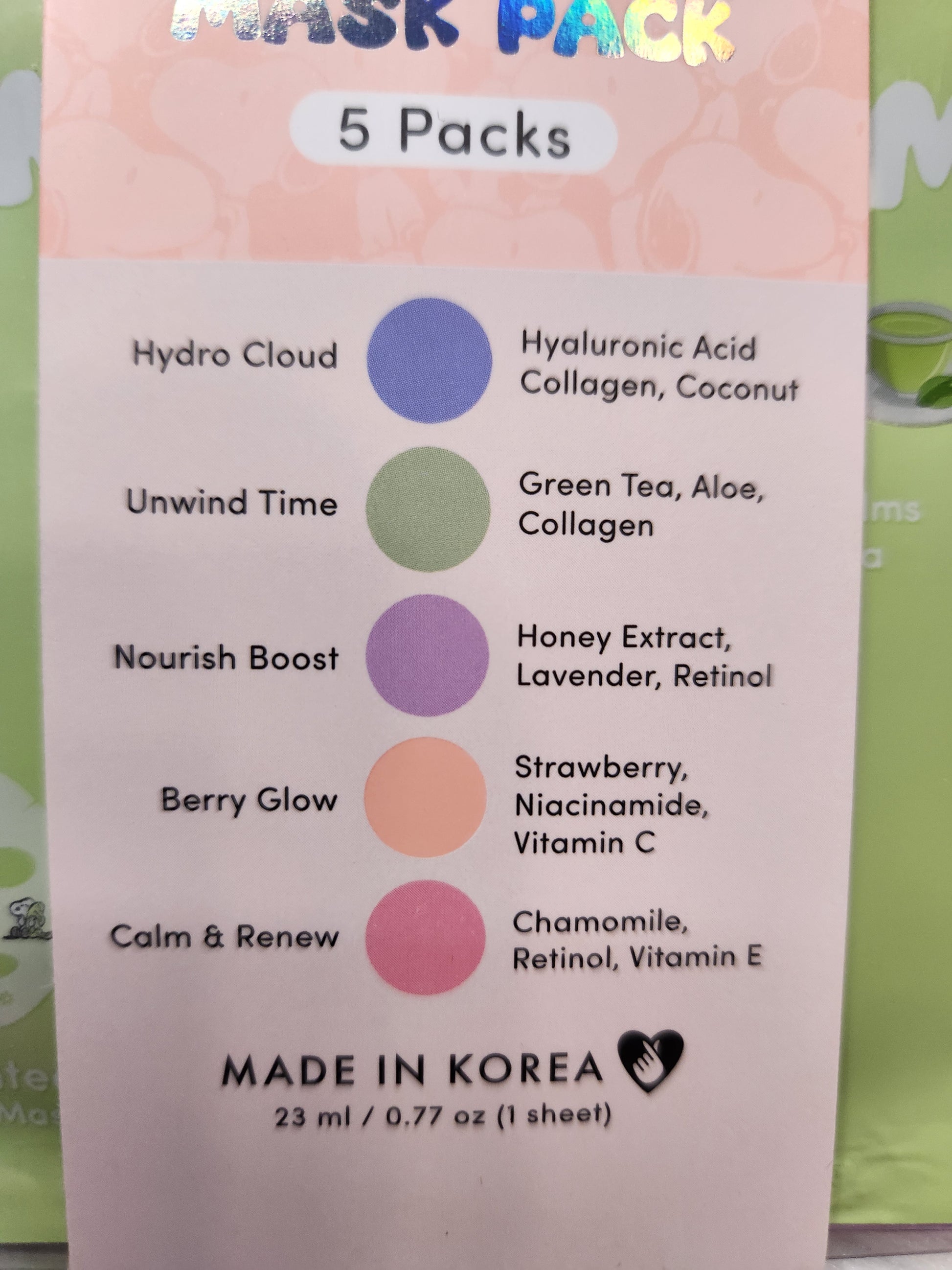 Celavi x Peanuts sheet mask containing green tea, aloe and collagen help hydrate and soothe skin.